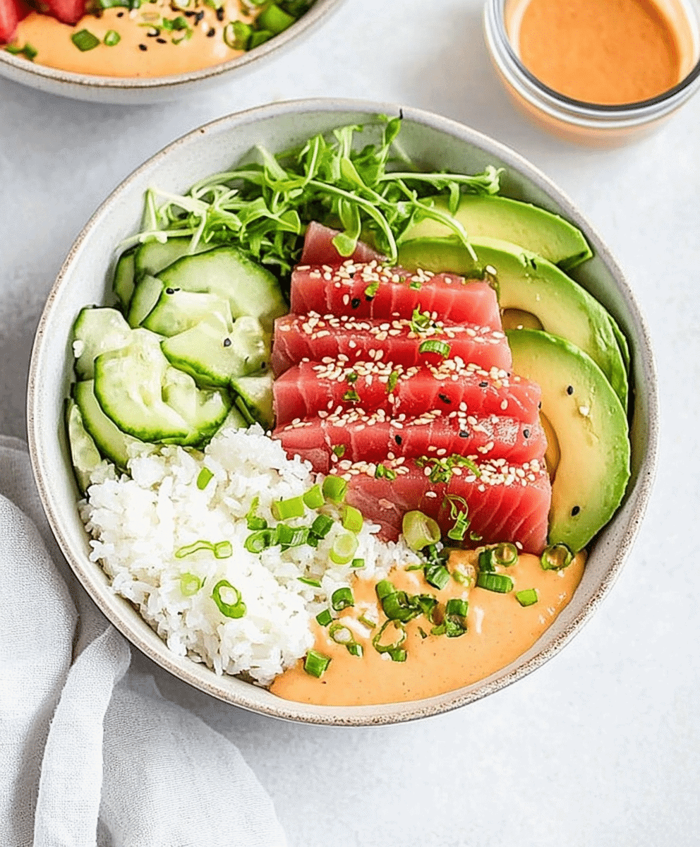 I first made this bowl on a whim after grabbing a few sushi-grade tuna steaks from my local fish market. Since then, it’s become our go-to summer meal: light, cool, and ready in under 30 minutes.